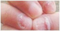 深层真菌不再繁殖,甲沟红肿消退,病甲变脆,甲下增厚的病变组织萎缩、脱落,病情不再恶化,手足癣逐渐脱屑。