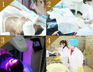 传统中药内服结合中药汽化熏蒸,使药效快速渗透,清洁毛孔,修复青春痘外部疤痕和痘印,重塑光洁皮肤。